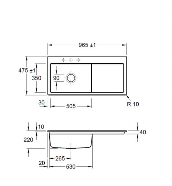 - Spülenmaße: L x B 965 x 475 mm