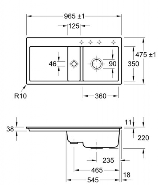 - diese Spüle ist nur als flächenbündige Spüle einbaubar; ein aufliegender Einbau oder der Einsatz als Unterbau-Spüle ist nicht möglich