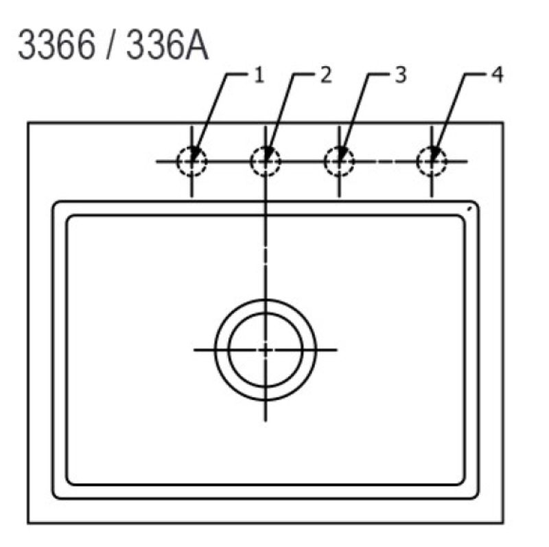 Option "Lochbohrungen durch Hersteller": Wenn Sie wünschen, dass aus Sicherheitsgründen die Lochbohrungen werksseitig vom Hersteller vorgenommen werden sollen, wählen Sie bitte diese Option. Hierfür benötigen wir von Ihnen die Nummern/Positionen des Hahnlochs/der Hahnlöcher, die V & B für Sie durchbohren soll. Bei der Spülenversion mit Handbetätigung benötigen Sie 1 Hahnlochbohrung für die Armatur, bei der Version mit Excenterbetätigung benötigen Sie 2 Lochbohrungen (Armatur und Excenter-Bedienung). Bitte beachten Sie hierzu die unten abgebildeten Maßzeichnungen, da die Positionen der Lochbohrungen bei reversiblen Spülen für die Becken-links und Becken-rechts-Versionen unterschiedlich sein können.