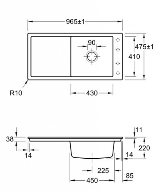 - Spülenmaße: L x B 965 x 475 mm