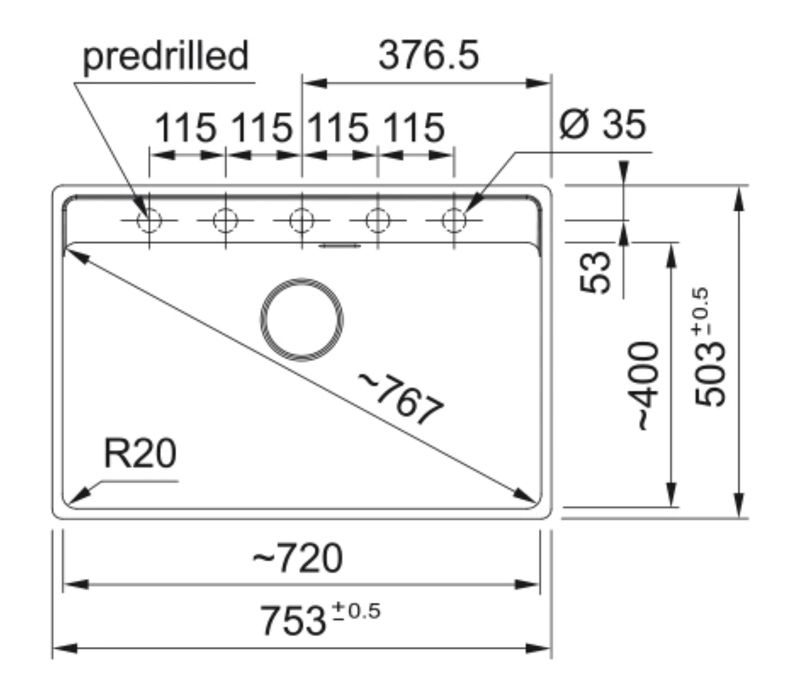 Spülenmaß: 753 x 503 mm