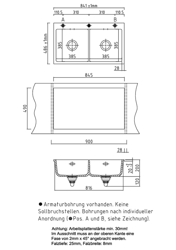 • Ausschnittmaß in der APL: Breite 845 x Tiefe 490 mm