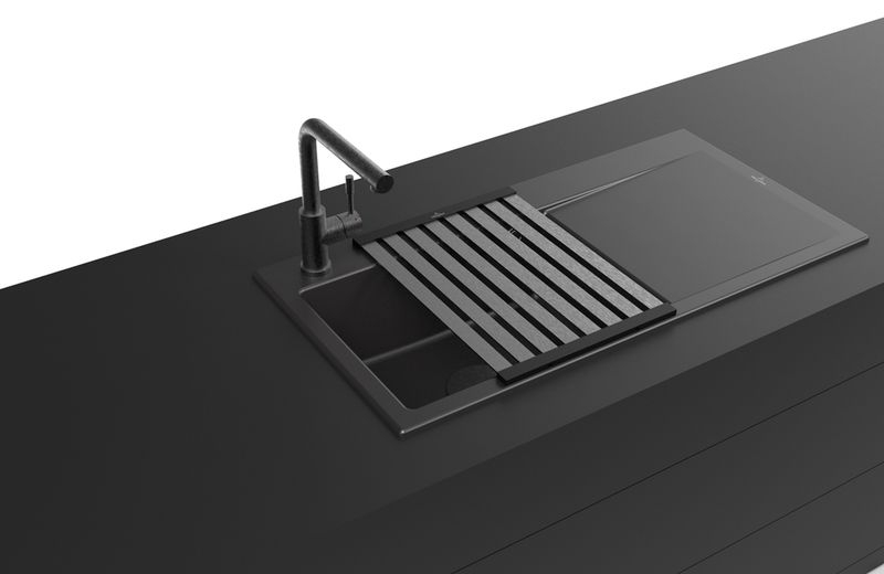 Villeroy & Boch Spülstein Einzelbecken, Premiumline, Hand- oder Excenterbetätigung, Farbe S5 Ebony