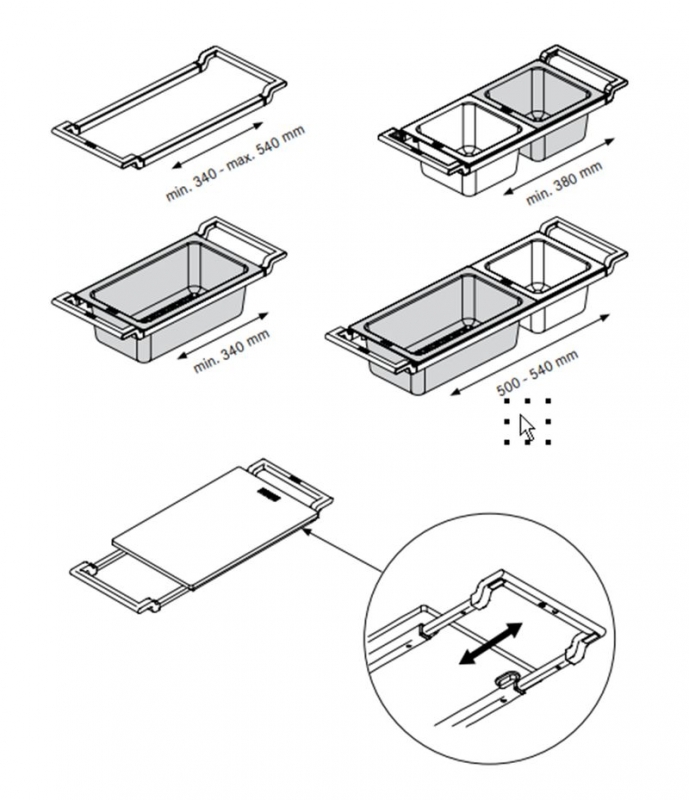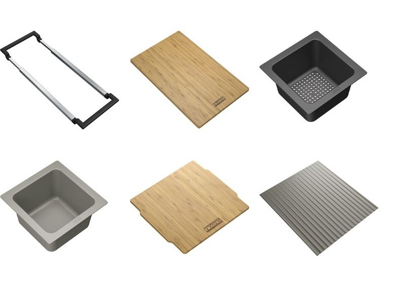 Einbauspüle Epos SlimTop, ab 60 cm, Edelstahl glatt, Integral-Siebkorb-Excenterventil, Becken rechts