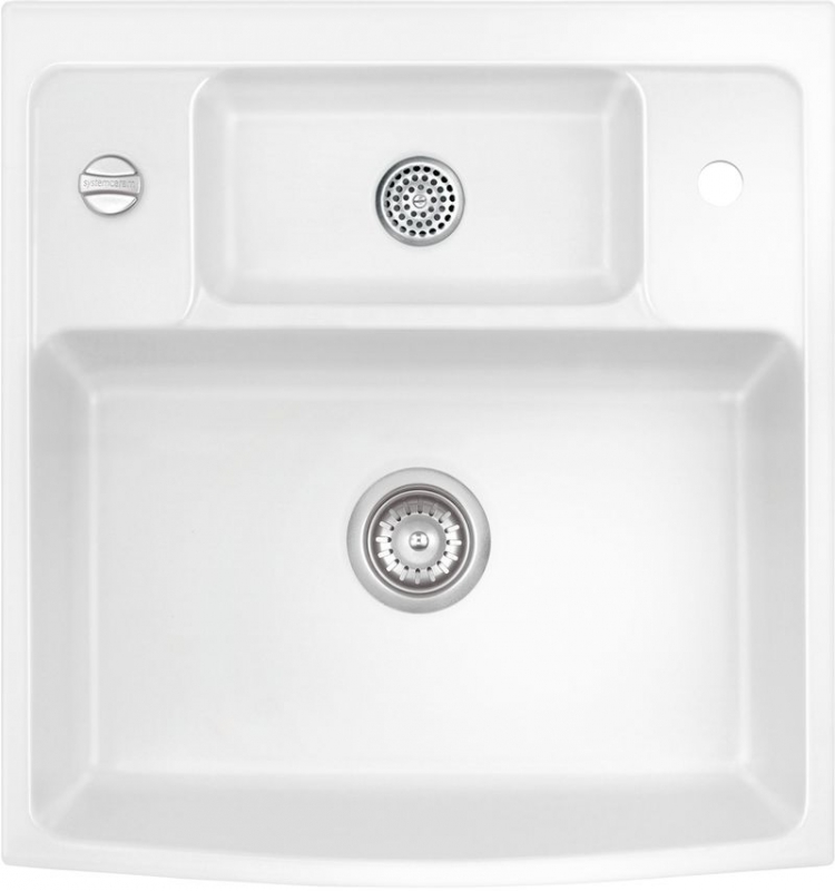 Das Füllen und Ablaufen der Spüle wird über einen runden Drehknebel auf der Oberseite der Spüle vorgenommen. Dieser Knebel, Excenterbetätigung genannt, verschließt oder öffnet den Ablauf der Spüle, je nachdem in welche Richtung er gedreht wird. Der Griff in das Spülwasser entfällt somit.