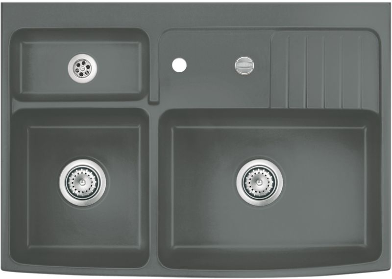 Hinweis: ist auf der oben stehenden Produktabbildung auf der Spüle ein runder Drehknebel zu sehen, handelt es sich um die Version mit Excenter-Betätigung. Eine eventuell abgebildete Armatur gehört nicht zum Lieferumfang.