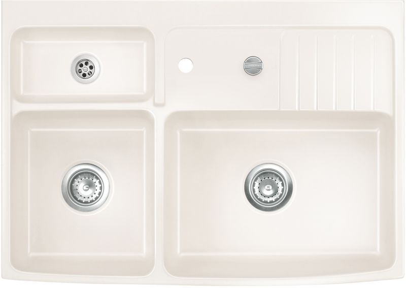Hinweis: ist auf der oben stehenden Produktabbildung auf der Spüle ein runder Drehknebel zu sehen, handelt es sich um die Version mit Excenter-Betätigung. Eine eventuell abgebildete Armatur gehört nicht zum Lieferumfang.