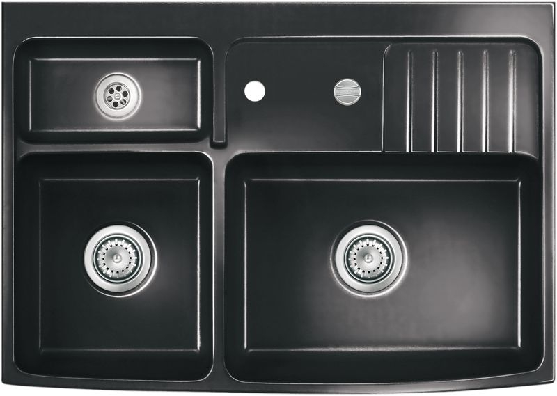 Hinweis: ist auf der oben stehenden Produktabbildung auf der Spüle ein runder Drehknebel zu sehen, handelt es sich um die Version mit Excenter-Betätigung. Eine eventuell abgebildete Armatur gehört nicht zum Lieferumfang.