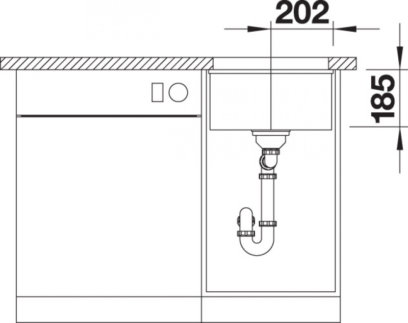 Unterbauspüle Blancosubline 350/150-U Keramik PuraPlus, Farbe schwarz, Ablaufsystem InFino®