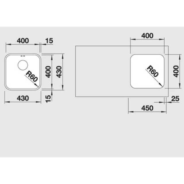 Blanco Supra Underline Unterbauspüle 500-U, 518205, Edelstahl bürstfinish, unterbaufähig, ebener Rand