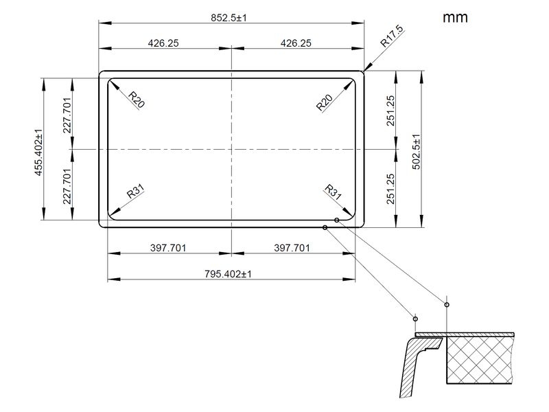 • ausschließlich flächenbündig und unterbündig einbaubar. Ein herkömmlicher Einbau als Auflage-Spüle ist nicht möglich! Insofern kann diese Spüle nur in Verbindung mit Arbeitsplatten aus Stein, Glas oder Granit eingebaut werden (bzw. nur in Verbindung mit Sonder-Lösungen einzelner Arbeitsplatten-Hersteller)