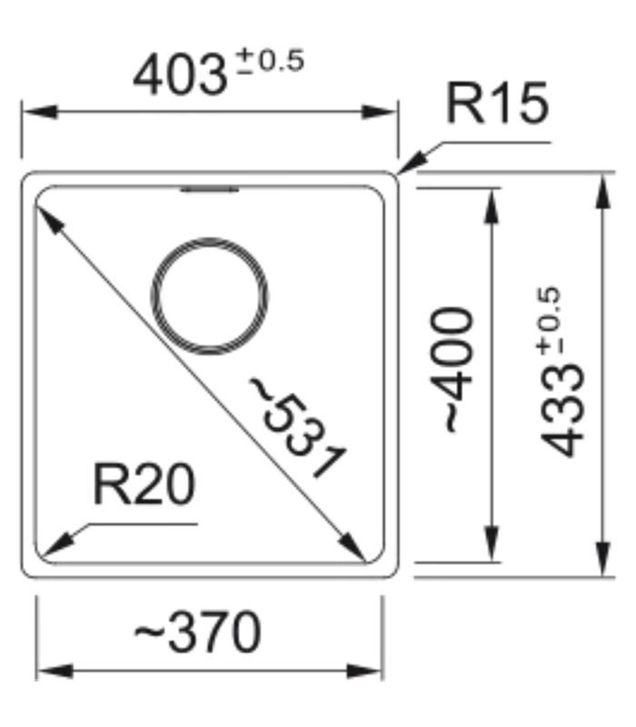 Beckenaussenmass: 403 x 433 mm