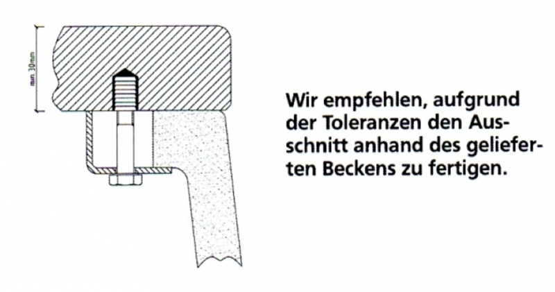 • diese Spüle ist nur als Unterbau Spüle geeignet (somit ausschließlich mit Arbeitsplatten aus Stein, Granit oder Glas kombinierbar); ein Einbau als Auflage- bzw. Einbau-Spüle oder der Einsatz als flächenbündige Spüle ist nicht möglich!