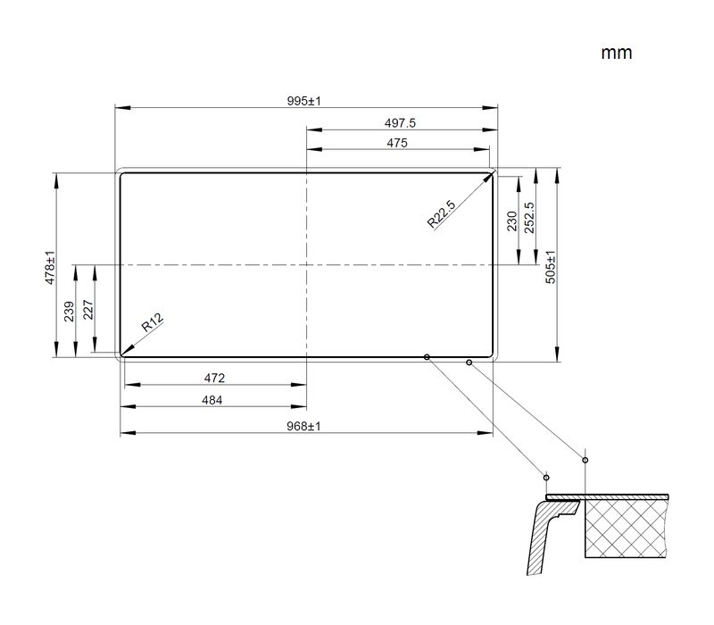 • ausschließlich flächenbündig und unterbündig einbaubar. Ein herkömmlicher Einbau als Auflage-Spüle ist nicht möglich! Insofern kann diese Spüle nur in Verbindung mit Arbeitsplatten aus Stein, Glas oder Granit eingebaut werden (bzw. nur in Verbindung mit Sonder-Lösungen einzelner Arbeitsplatten-Hersteller)