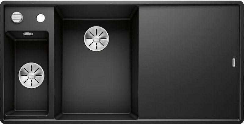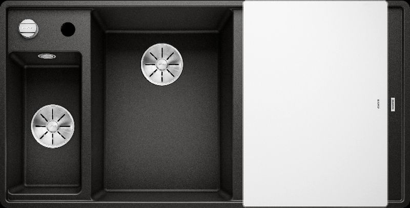 Blanco Axia III 6 S-F Silgranit PuraDur, Farbe schwarz, Glasschneidbrett, InFino Ablauf, Becken links, 525852