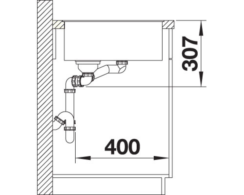 • Ablaufgarnitur mit Raumsparrohr