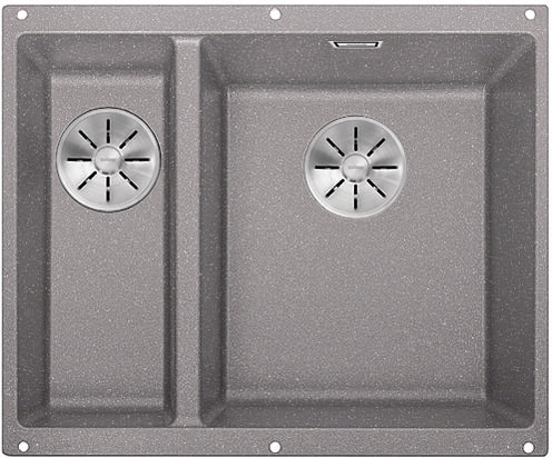 Unterbauspüle Blancosubline 340/160-U, Silgranit PuraDur 2 Becken rechts, verdeckter Überlauf, Farbe alumetallic