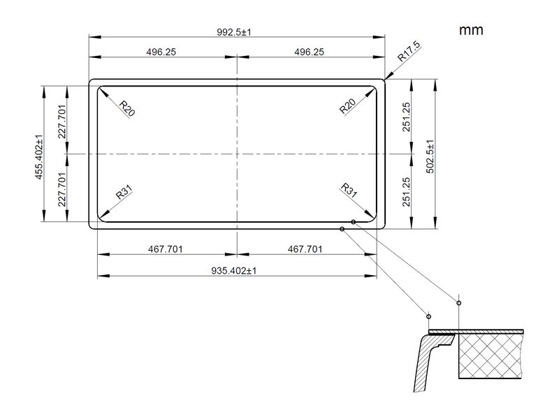 • ausschließlich flächenbündig und unterbündig einbaubar. Ein herkömmlicher Einbau als Auflage-Spüle ist nicht möglich! Insofern kann diese Spüle nur in Verbindung mit Arbeitsplatten aus Stein, Glas oder Granit eingebaut werden (bzw. nur in Verbindung mit Sonder-Lösungen einzelner Arbeitsplatten-Hersteller)