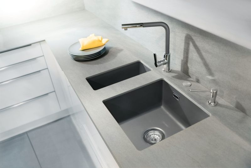 Das Füllen und Ablaufen der Spüle wird über einen runden Drehknebel auf der Oberseite der Spüle vorgenommen. Dieser Knebel, Excenterbetätigung genannt, verschließt oder öffnet den Ablauf der Spüle, je nachdem in welche Richtung er gedreht wird. Der Griff in das Spülwasser entfällt somit.