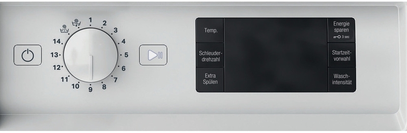 - Intensivspülen, Spülen und Schleudern, Schleudern und Abpumpen, Drehzahlreduzierung, ohne Endschleudern, Start/Pause