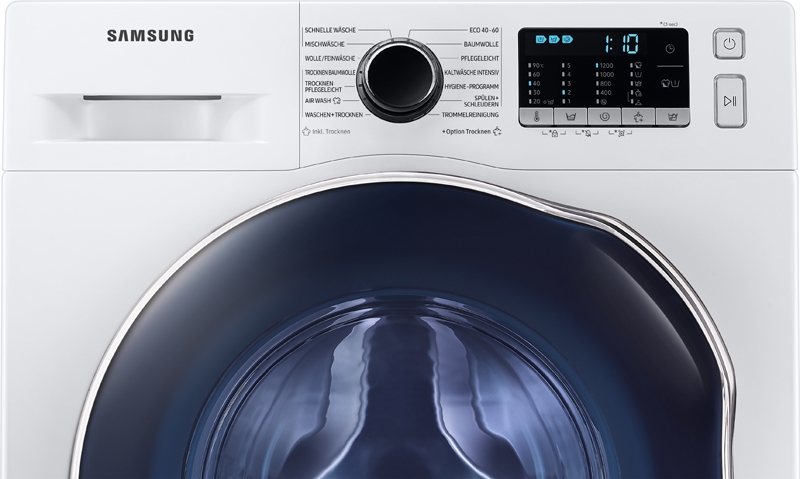 Waschmaschinen von Samsung können mit FleckenIntensiv mit nur einem Tastendruck kinderleicht gleichzeitig