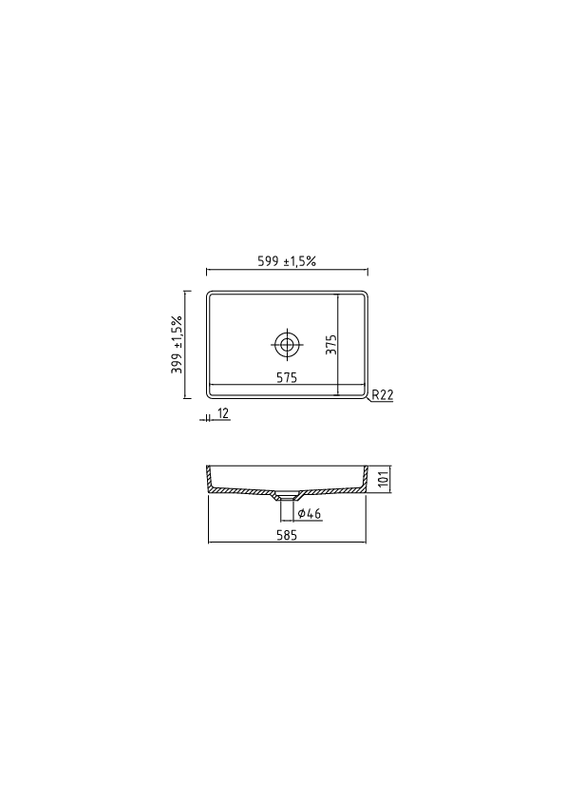 • Wir empfehlen, aufgrund der Toleranzen (± 1,5 %) den Ausschnitt anhand des gelieferten Beckens zu fertigen.